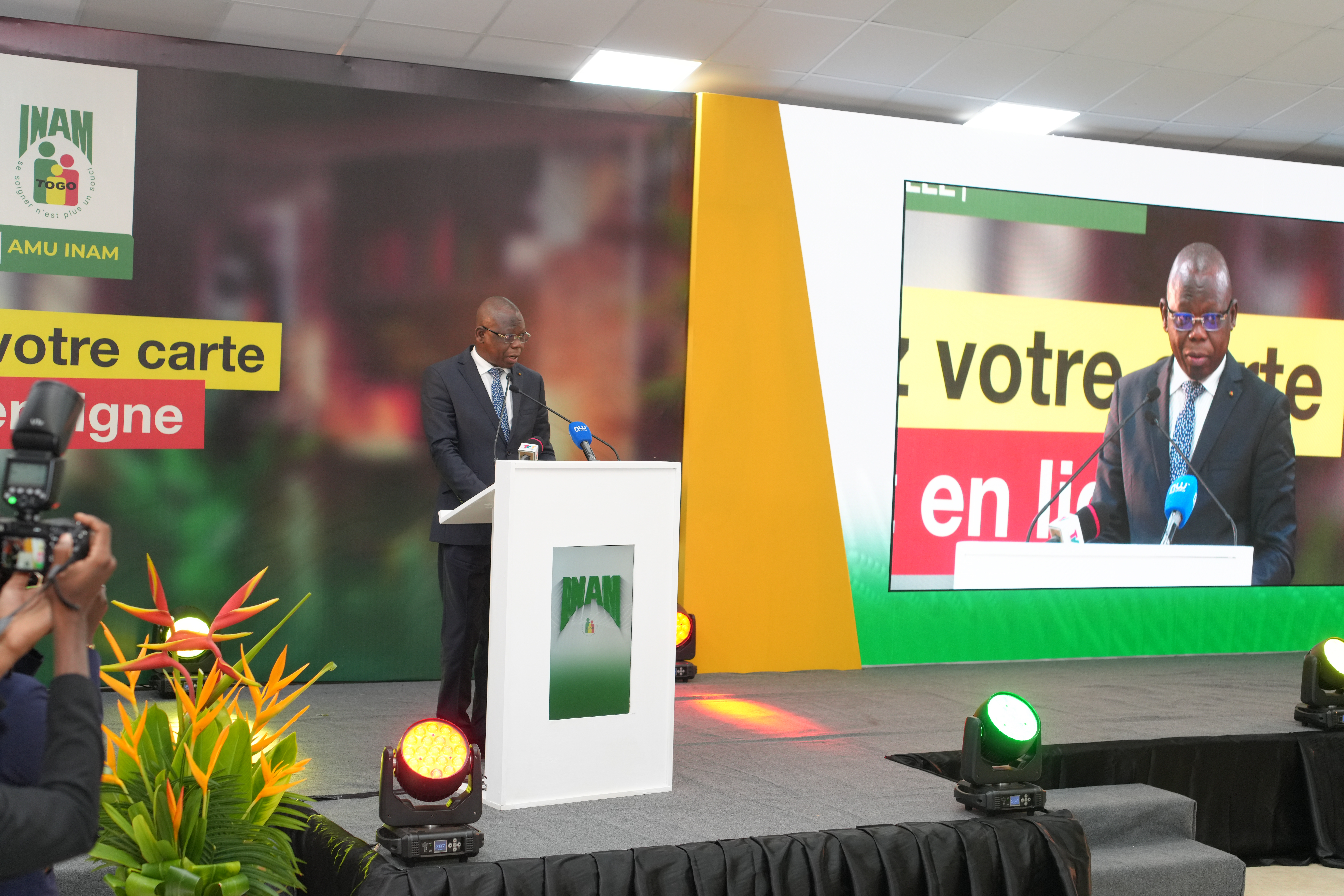 Le 21 avril 2026, c’est dans le chapiteau de l’hôtel SARAKAWA, en présence des membres du gouvernement, des institutions de la République, du Directeur Général de la CNSS, des partenaires techniques et financiers, ainsi que des représentants des centrales syndicales et des associations de retraités, que l’Institut National d’Assurance Maladie (INAM) a officiellement lancé sa plateforme de services en ligne et présenté sa nouvelle carte à puce AMU-INAM. Une étape historique dans la modernisation de la gestion de l’Assurance Maladie Universelle (AMU) au Togo.