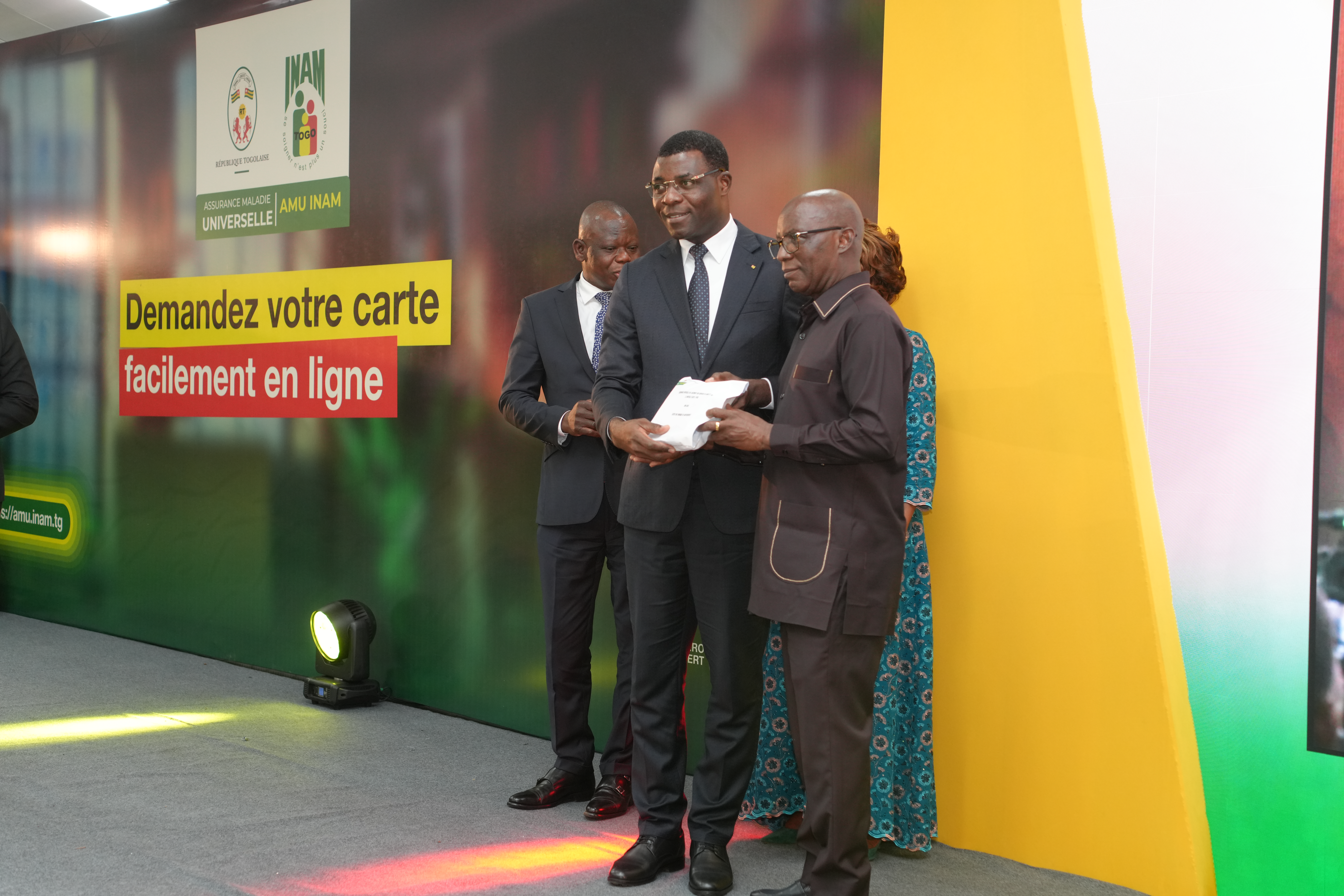 Le Directeur Général de l’INAM a tenu à exprimer publiquement sa reconnaissance au Directeur Général de la CNSS, Mme Ingrid AWADE, présente à la cérémonie, pour avoir mis à disposition, sans contrepartie, l’expérience, les orientations et l’infrastructure nécessaires à cette avancée. Une synergie qui, selon lui, est pleinement conforme aux orientations du Président du Conseil, Son Excellence Faure Essozimna GNASSINGBÉ.