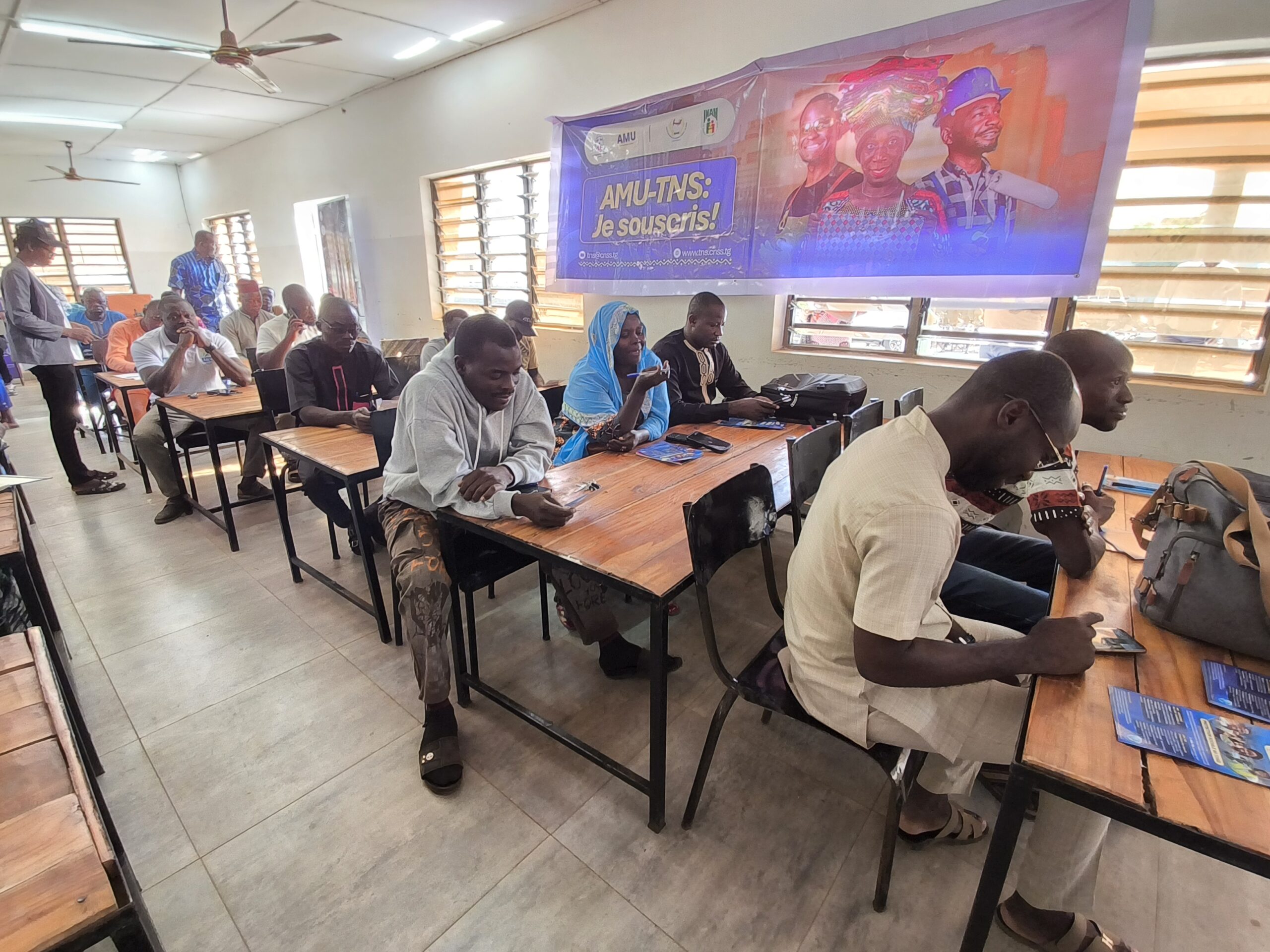 La salle prévue pour accueillir le public-cible s’est vite révélée exiguë du fait de la mobilisation des Travailleurs Non-Salariés venus nombreux pour mieux s’informer. Le Colonel OUADJA Gbandi Jacques, préfet de l’Oti, qui a présidé à l’ouverture des travaux a rappelé l’importance que revêt l’extension de la couverture de l’assurance maladie universelle aux TNS en général et aux TNS de sa préfecture en particulier.